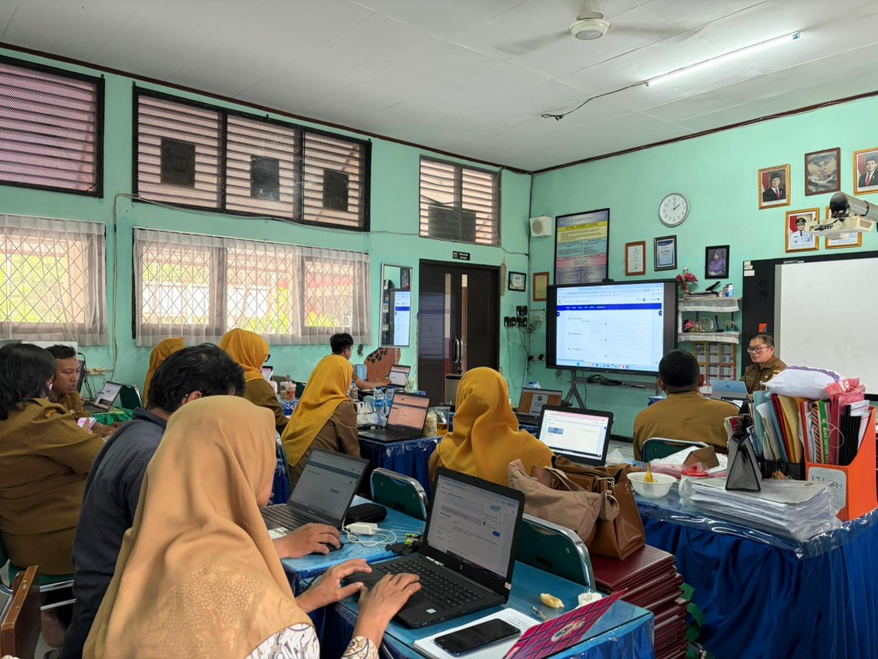 Suasana ruang guuru SDN Jatinegara Kaum 14 tampak berbeda dari biasanya. Meja-meja tertata rapi, laptop terbuka di hadapan para guru, dan layar interaktif di depan ruangan menampilkan materi pelatihan. Dalam balutan seragam cokelat, para pendidik terlihat fokus, serius, dan penuh semangat mengikuti kegiatan In House Training yang membahas penggunaan aplikasi e-learning berbasis Moodle.