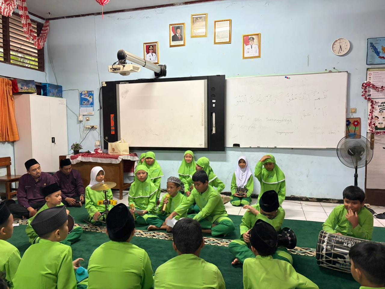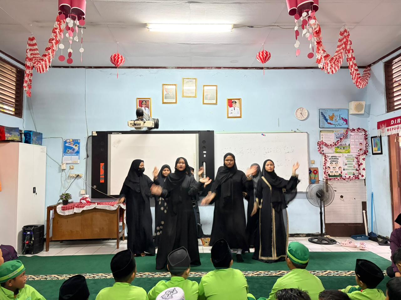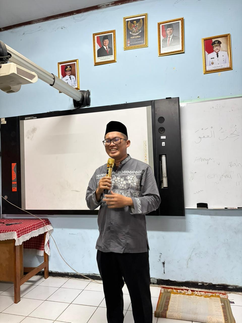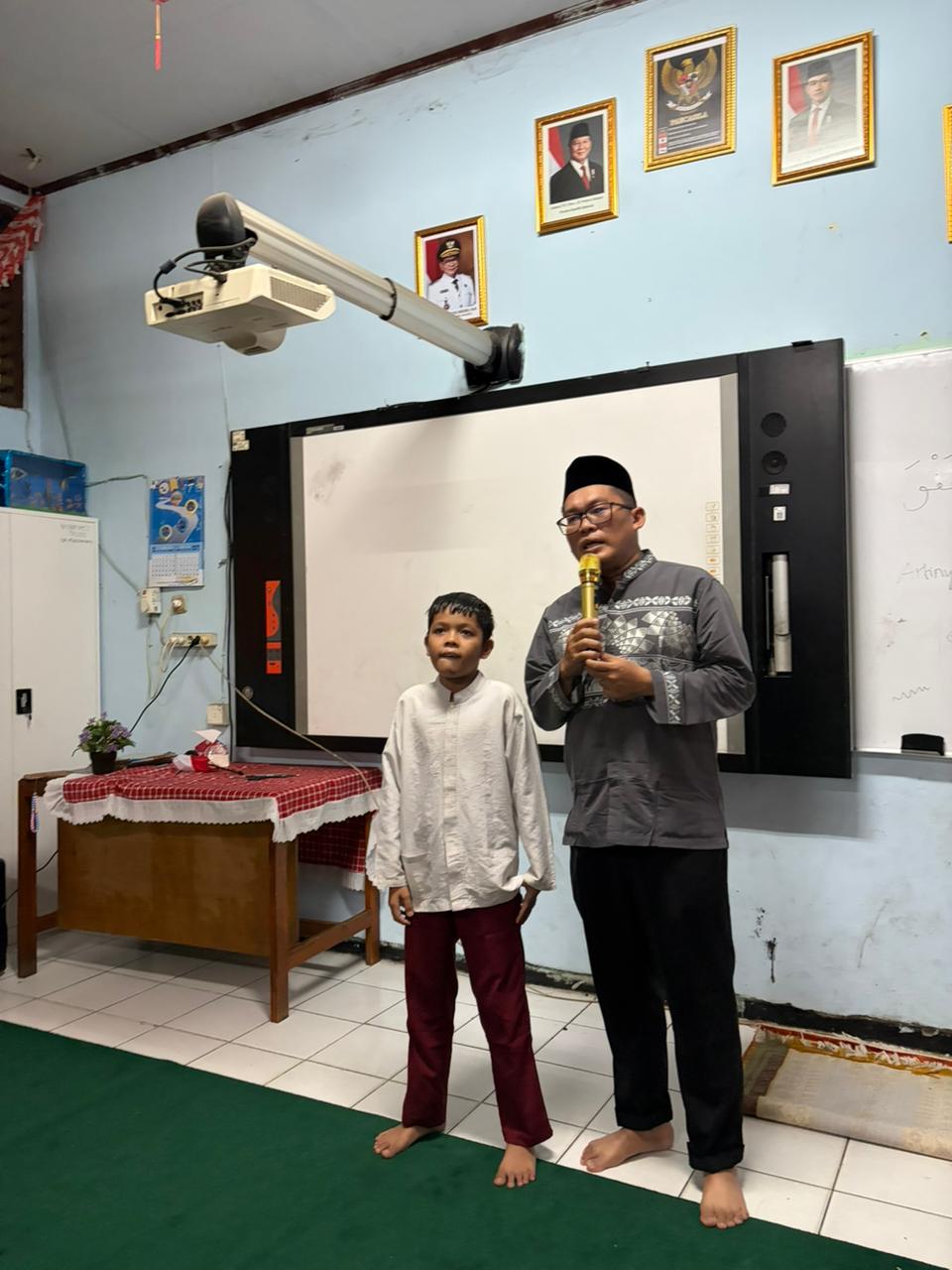 Untuk menambah semarak suasana, beliau juga mengadakan kuis-kuis Islami yang langsung disambut dengan sangat antusias oleh para murid. Anak-anak dengan penuh semangat mengangkat tangan untuk menjawab pertanyaan yang diberikan. Tawa dan keceriaan pun terlihat ketika beberapa murid berhasil menjawab dengan benar dan mendapatkan hadiah menarik, sehingga membuat suasana semakin hidup dan menyenangkan.