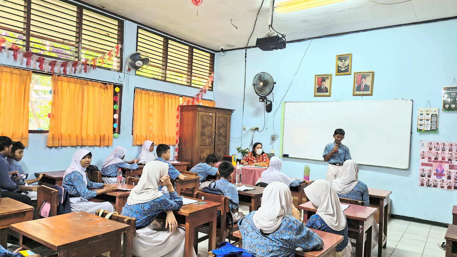 Ruang kelas yang sederhana namun tertata rapi, dihiasi papan tulis dan atribut pendidikan, menjadi saksi bagaimana siswa berusaha menampilkan kemampuan terbaiknya. Interaksi antara siswa dan guru terlihat harmonis, menciptakan lingkungan belajar yang kondusif dan menyenangkan.