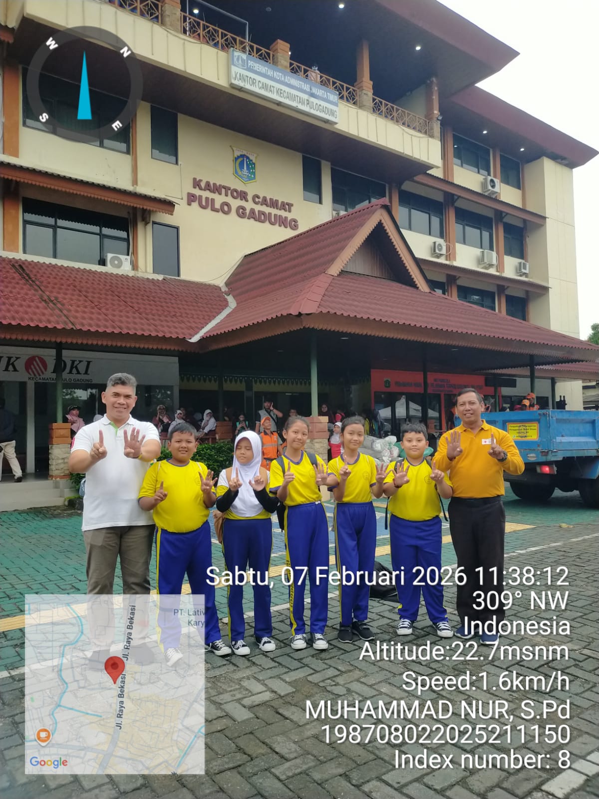 Sebagai penutup, para siswa bersama pembina melakukan sesi dokumentasi di halaman Kantor Kecamatan Pulogadung bersama Wakil Camat Pulogadung. Momen tersebut menjadi kesempatan berharga bagi siswa untuk berinteraksi langsung dengan unsur pimpinan wilayah sekaligus menumbuhkan rasa bangga dan percaya diri. Dengan penuh semangat, mereka berfoto bersama sebagai kenang-kenangan kegiatan pelatihan hari itu.